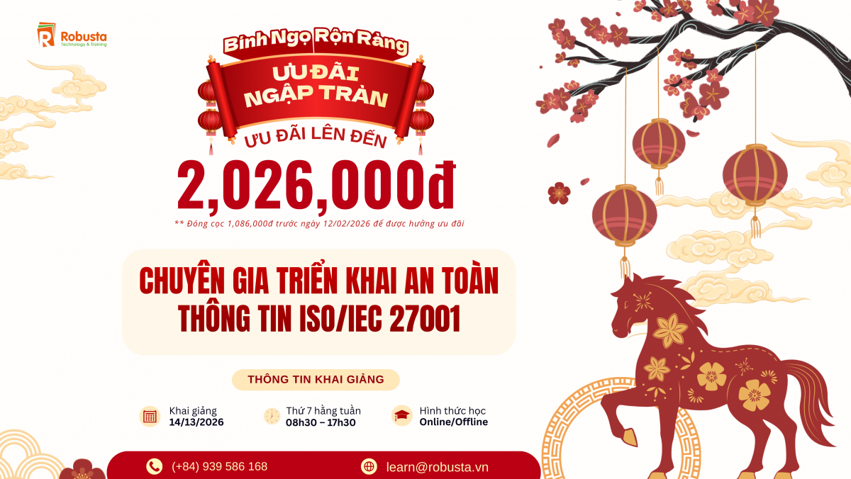 Trong thời gian từ 15/01/2026 đến 12/02/2026, học viên đăng ký khóa học ISO/IEC 27001:2022 tại Robusta sẽ nhận được:
