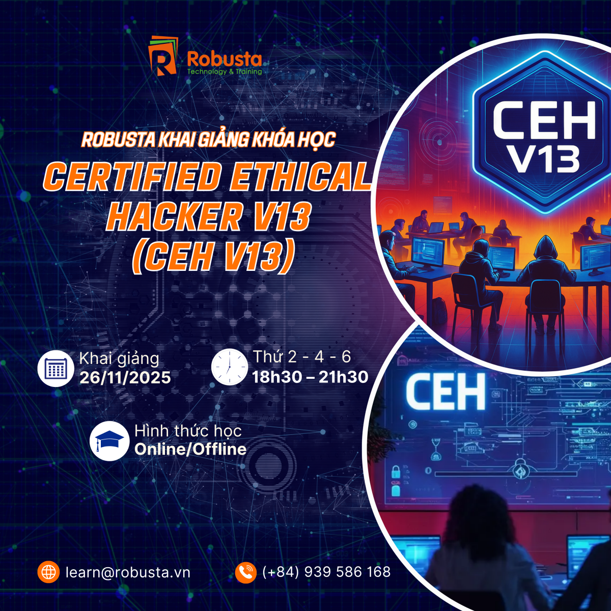 Là đối tác đào tạo ủy quyền chính thức của EC-Council tại Việt Nam, Robusta mang đến chương trình CEHv13 chuẩn quốc tế – cùng nhiều ưu đãi đặc biệt và gia tăng trải nghiệm thực tế và hỗ trợ tối đa cho học viên.