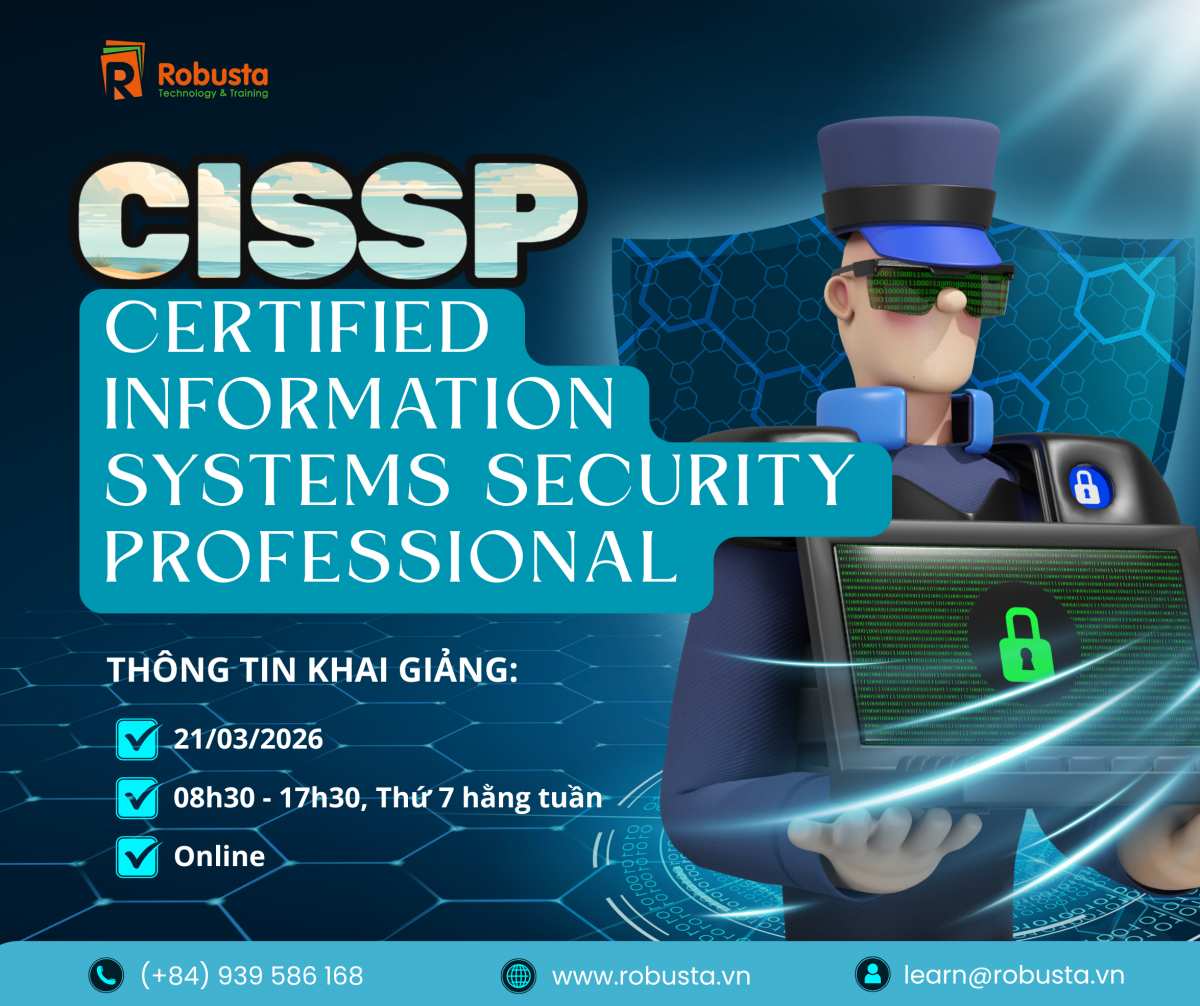 Khóa học CISSP chính thức từ ISC2 tại Robusta sẽ giúp bạn chuẩn bị toàn diện cho kỳ thi và sẵn sàng bước lên một cấp độ mới trong sự nghiệp bảo mật thông tin.