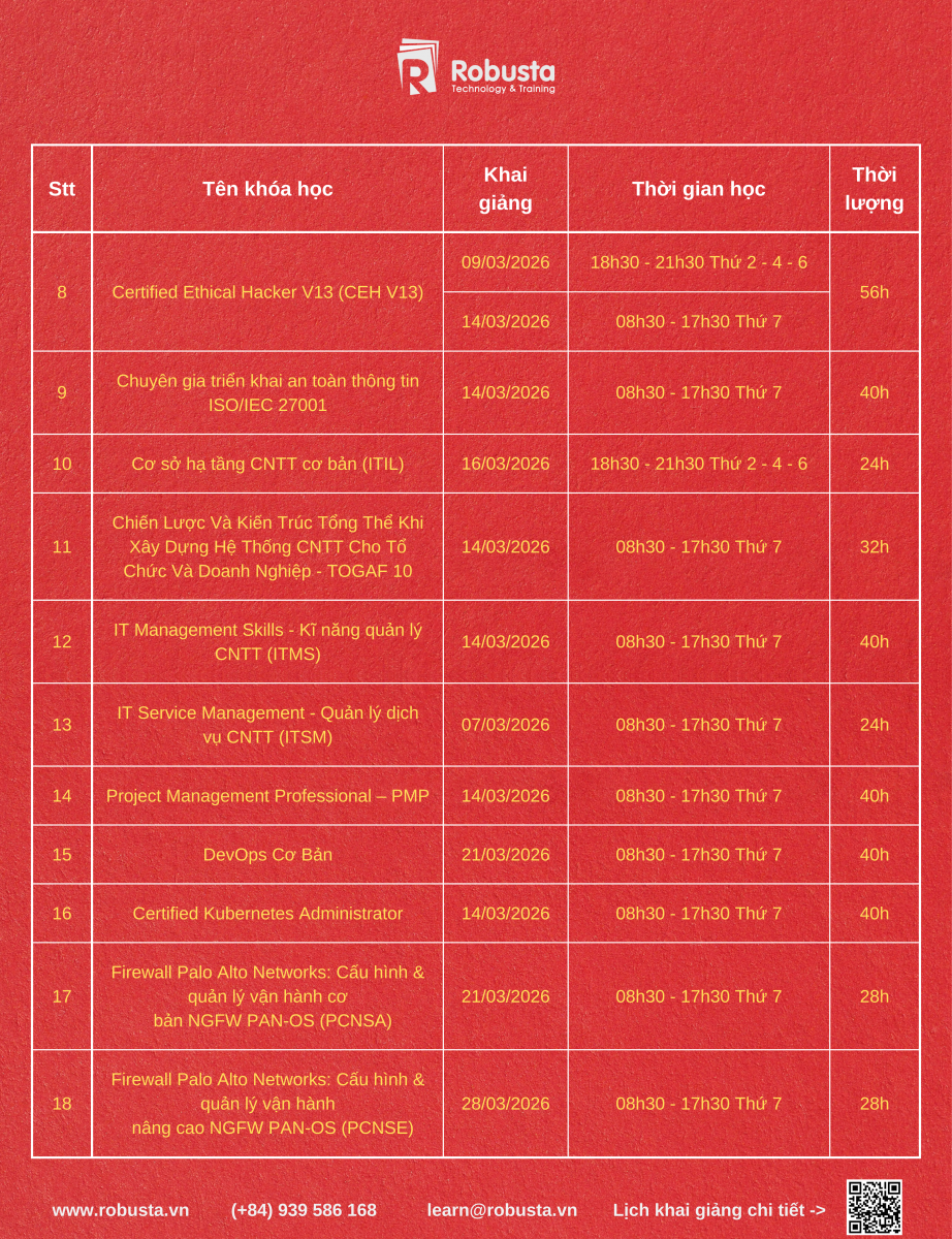 - CEH v13 – Trở Thành Hacker Mũ Trắng Trong Thời Đại AI Cùng Robusta