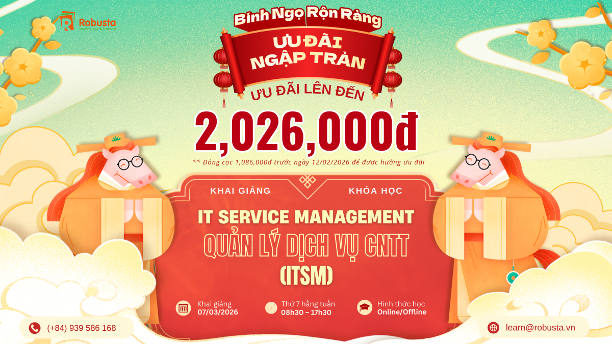 - ĐÓN LỘC XUÂN 2026 CÙNG ROBUSTA: KHÓA HỌC ITIL® 4 FOUNDATION – CHÌA KHÓA THĂNG TIẾN TRONG QUẢN LÝ DỊCH VỤ CNTT
