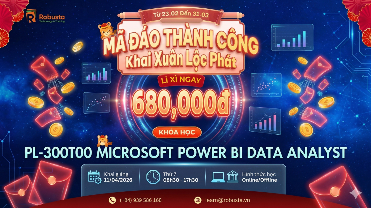 Khóa học PL-300T00: Microsoft Power BI Data Analyst tại Robusta được thiết kế theo định hướng thực hành – ứng dụng – sẵn sàng làm việc thực tế, giúp học viên không chỉ hiểu Power BI mà còn khai phá dữ liệu để tạo ra giá trị cho doanh nghiệp.