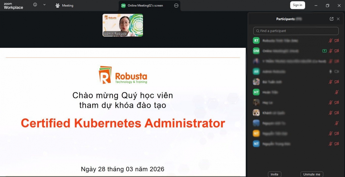 Ngày 28/03/2026 vừa qua, Robusta đã chính thức khai giảng khóa học Certified Kubernetes Administrator (CKA) với hình thức đào tạo online tương tác trực tiếp cùng giảng viên. Đây là chương trình đào tạo chuyên sâu kéo dài 40 giờ (5 ngày), được thiết kế nhằm giúp học viên làm chủ Kubernetes – nền tảng orchestration container đang trở thành tiêu chuẩn trong hạ tầng công nghệ hiện đại.