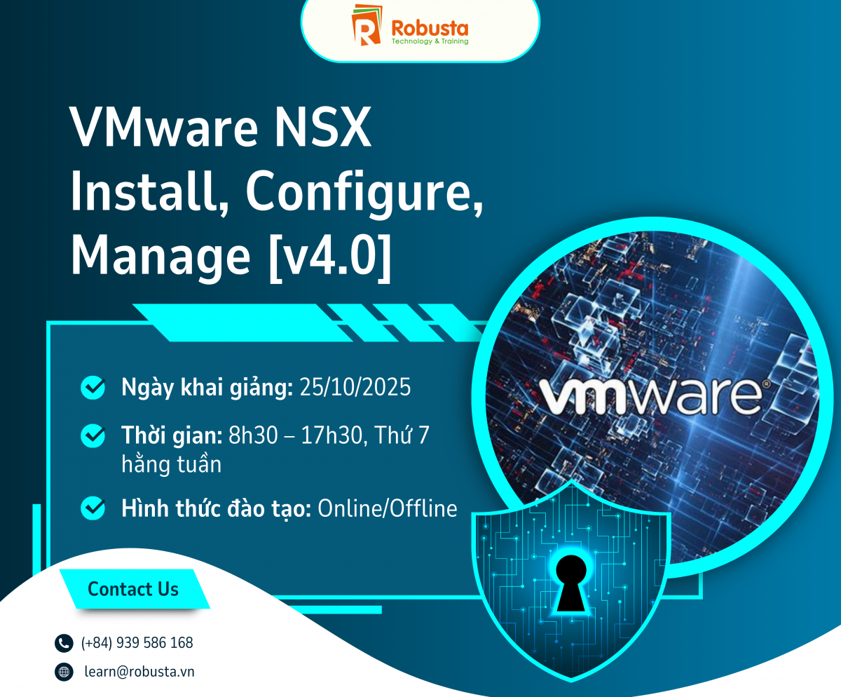 Khóa học VMware NSX Install, Configure, Manage [v4.0] tại Robusta được thiết kế dành cho các quản trị viên mạng, bảo mật và chuyên gia ảo hóa muốn nắm vững cách cài đặt, cấu hình và quản trị NSX theo chuẩn thực tế của VMware.