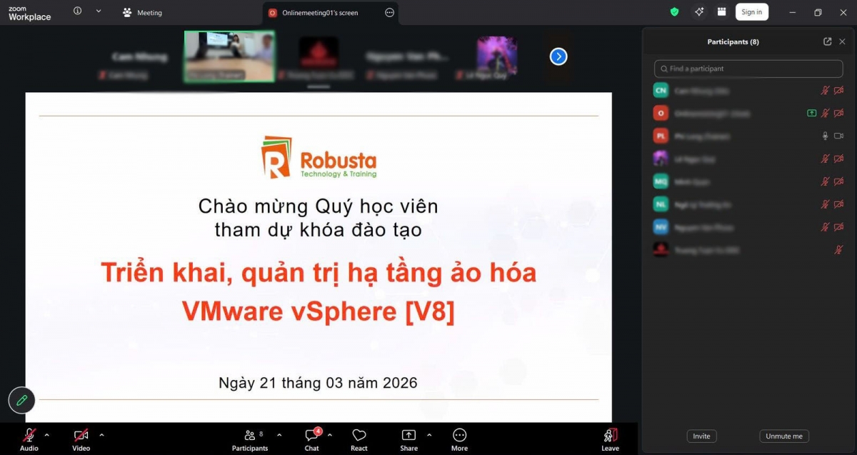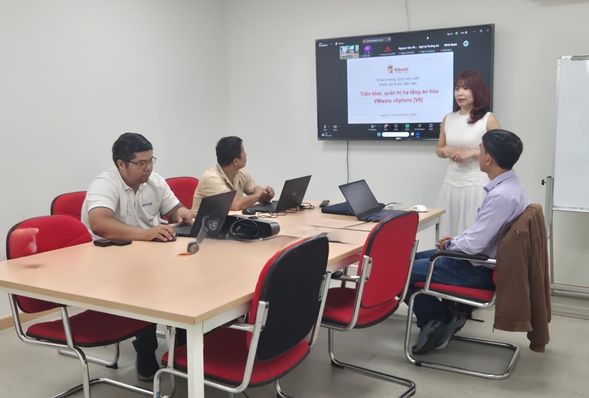 Robusta vừa khai giảng khóa học “VMware vSphere [V8] – Triển khai và Quản trị hạ tầng ảo hóa” theo hình thức học kết hợp online và offline, với sự tham gia của nhiều học viên đến từ các đơn vị công nghệ, tài chính và viễn thông trên cả nước.