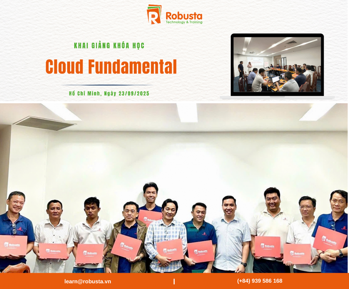 Tháng 9/2025 khép lại với nhiều hoạt động nổi bật của Robusta – đơn vị đào tạo công nghệ thông tin chuyên sâu dành cho doanh nghiệp và người đi làm. Đúng với định hướng trở thành đối tác tin cậy trong việc phát triển năng lực công nghệ, Robusta đã đồng loạt khai giảng nhiều khóa học quan trọng thuộc các lĩnh vực AI, Cloud, An ninh mạng và Quản trị hạ tầng hiện đại.