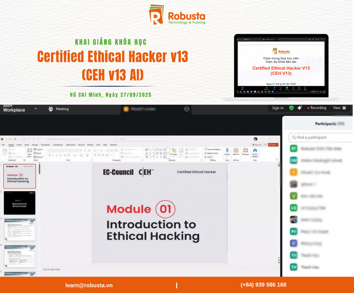 Loạt khóa học khai giảng trong tháng 9/2025 một lần nữa khẳng định định hướng của Robusta: đào tạo chuyên sâu, gắn liền thực tiễn, và phục vụ trực tiếp nhu cầu của doanh nghiệp. Các chương trình không chỉ giúp học viên đạt được chứng chỉ quốc tế uy tín mà quan trọng hơn, trang bị kỹ năng áp dụng ngay vào công việc.