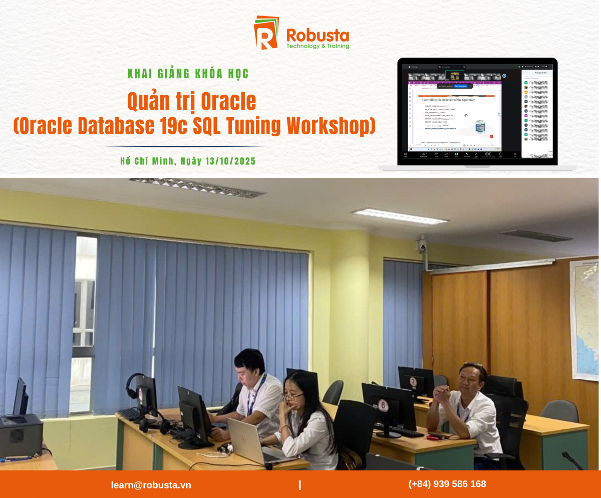 - Khóa “Oracle Database 19c SQL Tuning Workshop” giúp DBA, Developer và Data Engineer hiểu sâu cơ chế tối ưu truy vấn, đánh giá hiệu suất SQL, và ứng dụng các kỹ thuật tối ưu hiệu quả trong hệ thống cơ sở dữ liệu doanh nghiệp. Nội dung khóa học tập trung vào thực hành tuning, theo dõi execution plan, và sử dụng các công cụ phân tích hiệu năng Oracle.